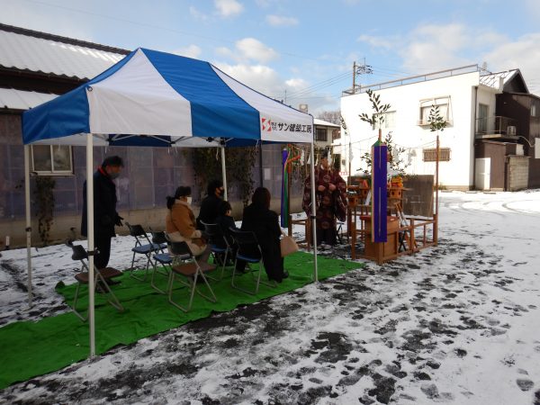 先日雪が残る中、地鎮祭を行いました☃ 滅多に雪が積もらないので、記憶に残る地鎮祭となりました😊 お家が無事に完成し、末永く穏やかに暮らせますように。 みんなで祈願しました。 約4か月間、安全に工事を進めていきますので、よろしくお願い致します。