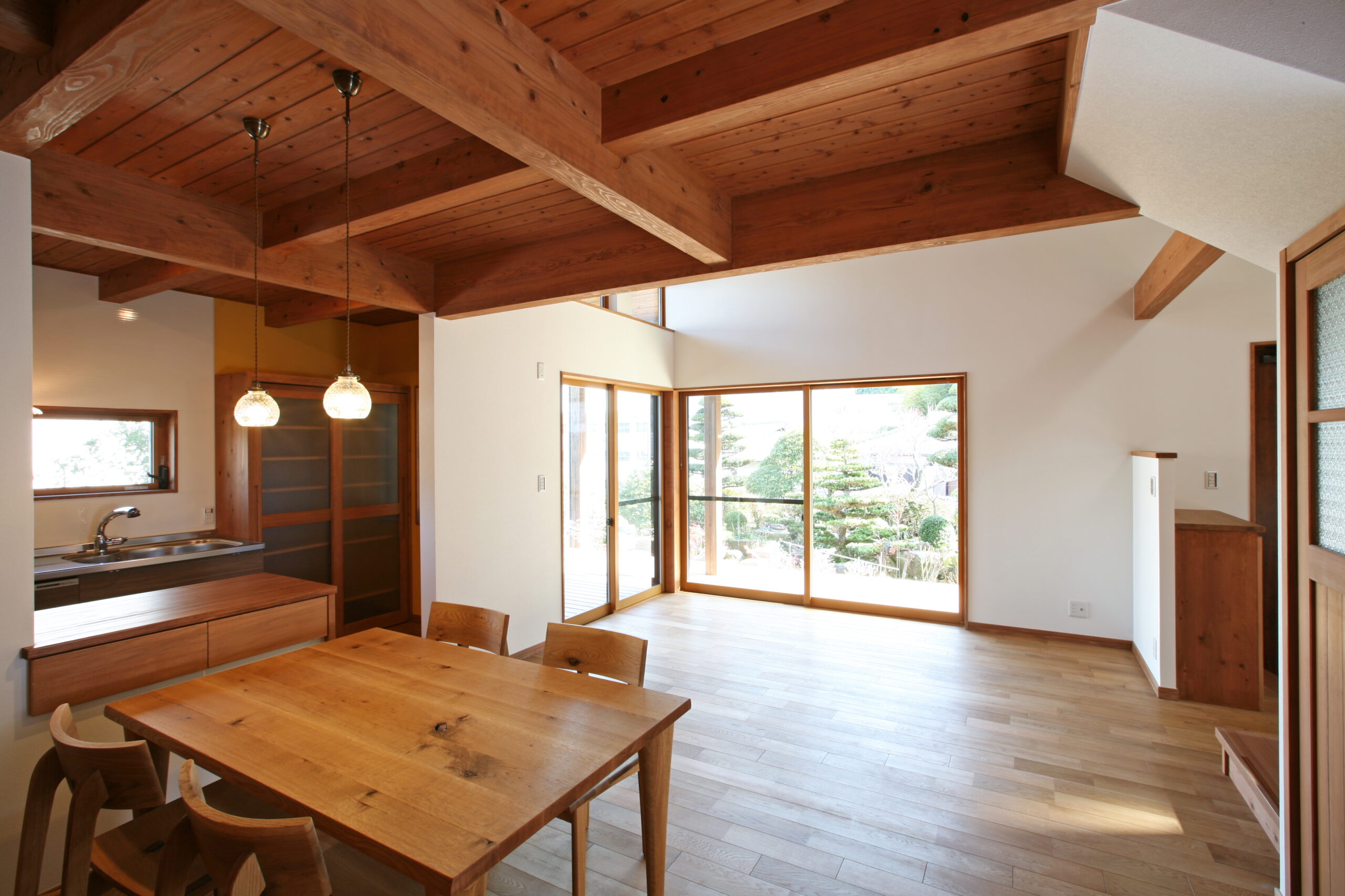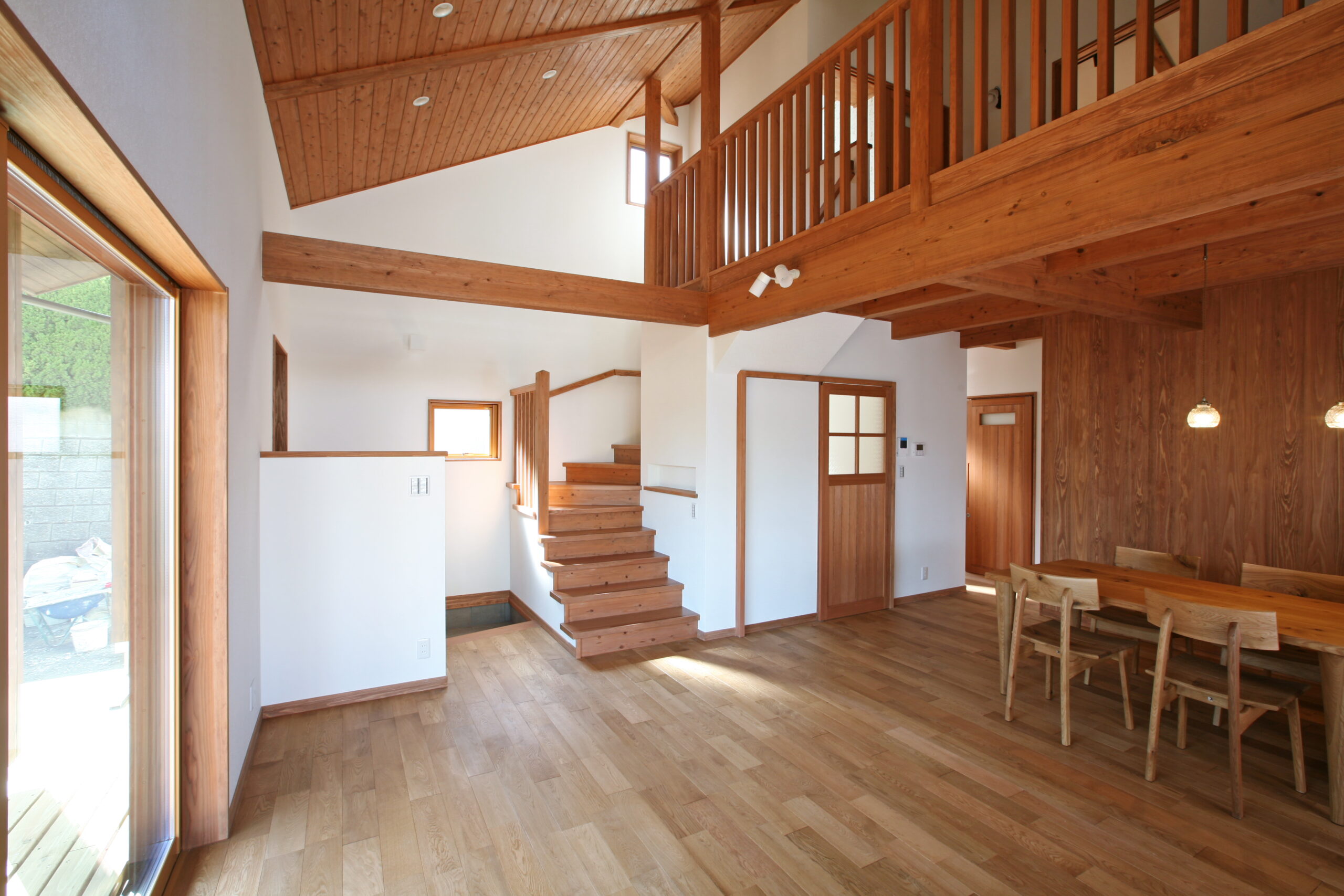大屋根の外観とオークの床は当初からのこだわり。落ち着いた個性のとても素敵な住まいになりました。