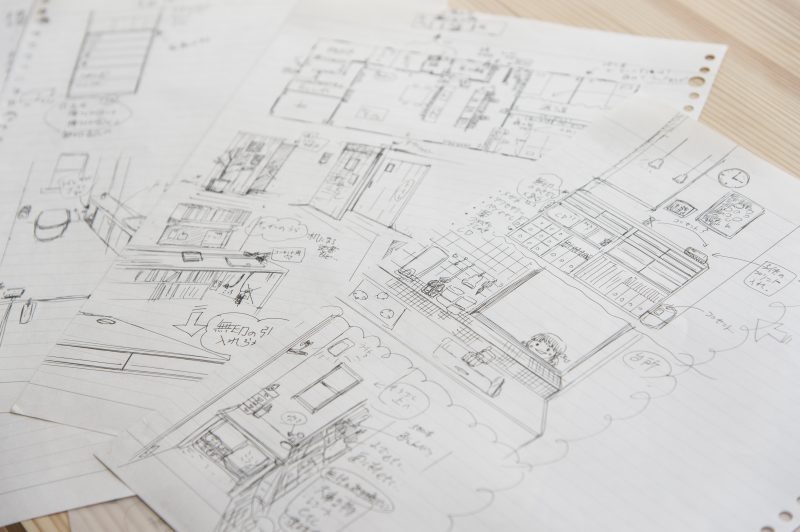 思い描いたのは「おばあちゃんになっても好きだな、愛おしいなと思える家」。家族4人で過ごすのに必要な部屋の数、それぞれの広さ、そこに配置したい家具や小物…想像をめぐらせるだけで心はずんだ。あふれ出すアイデアは次々とノートに書き溜めた。このノートを見ていると、今でも打合せ当時の奥さまのワクワクとした気持ちが伝わってくる。