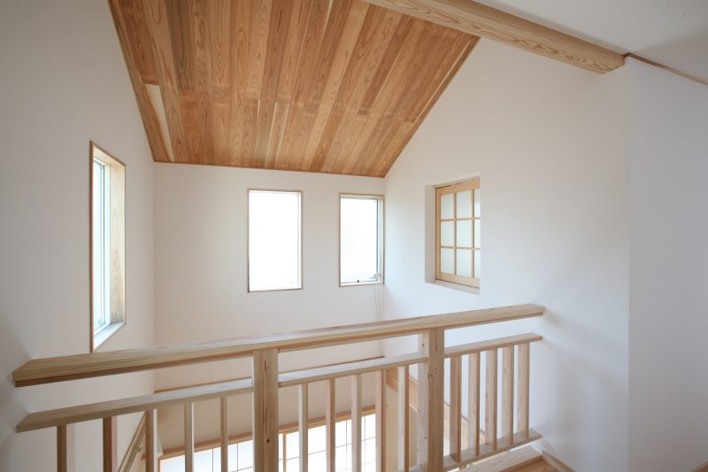 毎日忙しい共働きのパパさんママさんのための“楽”する住まい。2Fのホールスペースに洗濯物が干せたり、効率よく家事ができるように設計しました。
