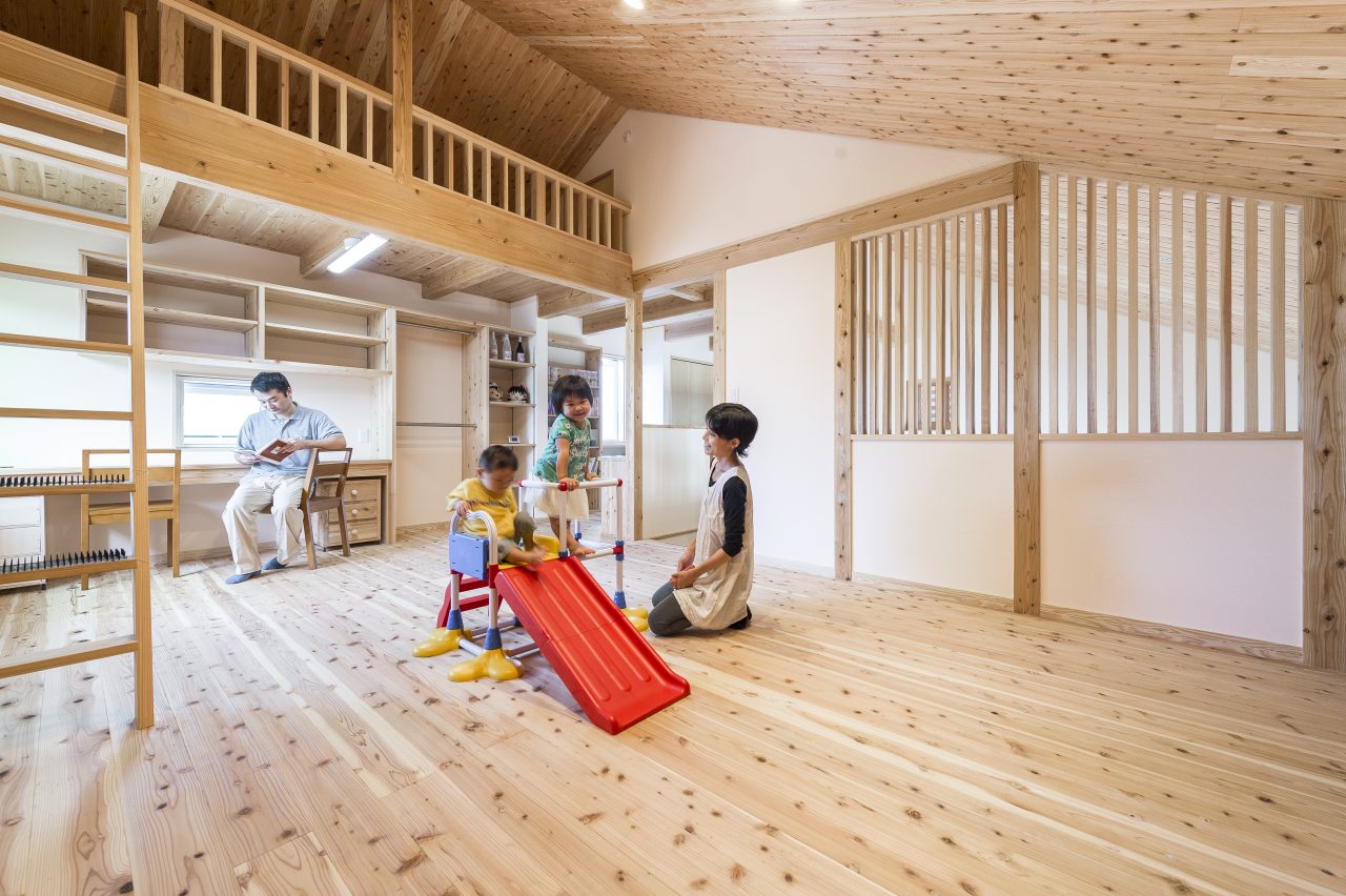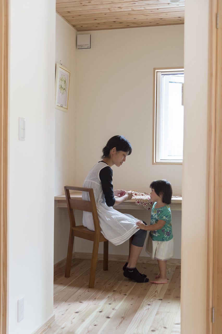 「小国杉と、ほたて漆喰のおかげでしょうか。梅雨時期に入居したんですが、とにかくカラッとしていました。それまで住んでいたアパートは、湿気がちで、結露に悩まされることもあったので、すごく驚いたんです」。と奥さま。