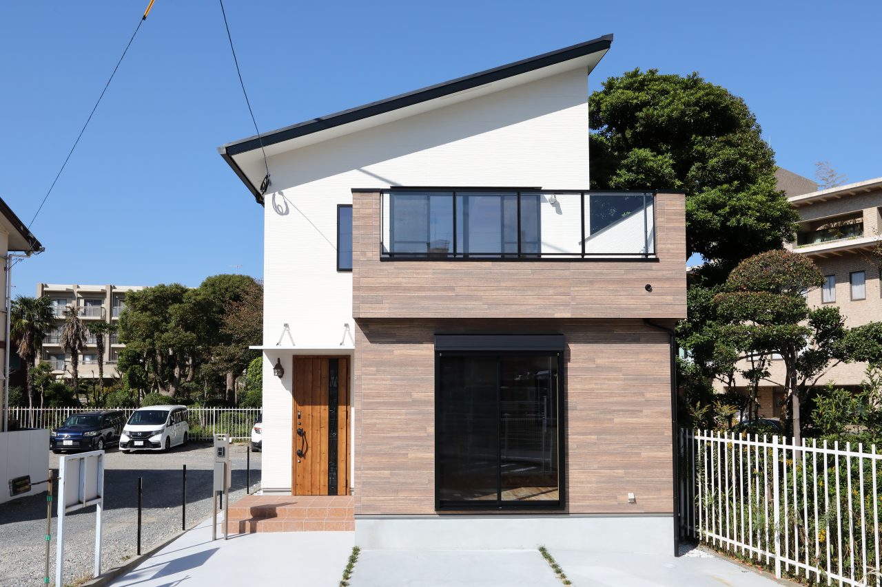 小倉北区、利便性至極の地。約30坪のコンパクトに敷地に20帖のリビングを備え、2階には、ワンちゃんと戯れるひろびろバルコニーを兼ね備えた住まい。担当した設計士は「お客さまのご要望を最大限生かしたくて…」と語る。