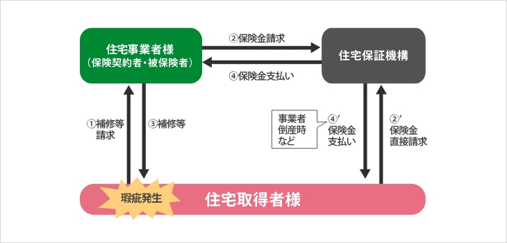 万が一、弊社が倒産等により瑕疵担保責任を履行できない場合には、住宅取得者様であるお客様に対して直接保険金が支払われます。