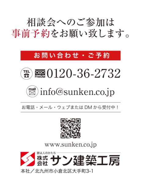 北九州の新築注文住宅や木の家リノベーションはサン建築工房へ。私たちは、住みごこちをたいせつにした木のぬくもりを感じる住まいを丁寧につくります。また、自然素材、OMソーラーの住まいをベースに高気密・高断熱といった家計にやさしい住宅の高性能化にもリーズナブルな価格で取り組んでいます。構造材はブランド杉「小国杉」を使い、内装はけいそう土やしっくいで仕上げる自然素材の住まいづくりを得意としています。モデルハウス見学、完成見学会、森林ツアーなど、実際に木材のぬくもりを感じていただくイベントを随時開催しています。また土地探しからトータルでお手伝いいたします。北九州の住まいに関することならお気軽にお問い合わせくださいませ。